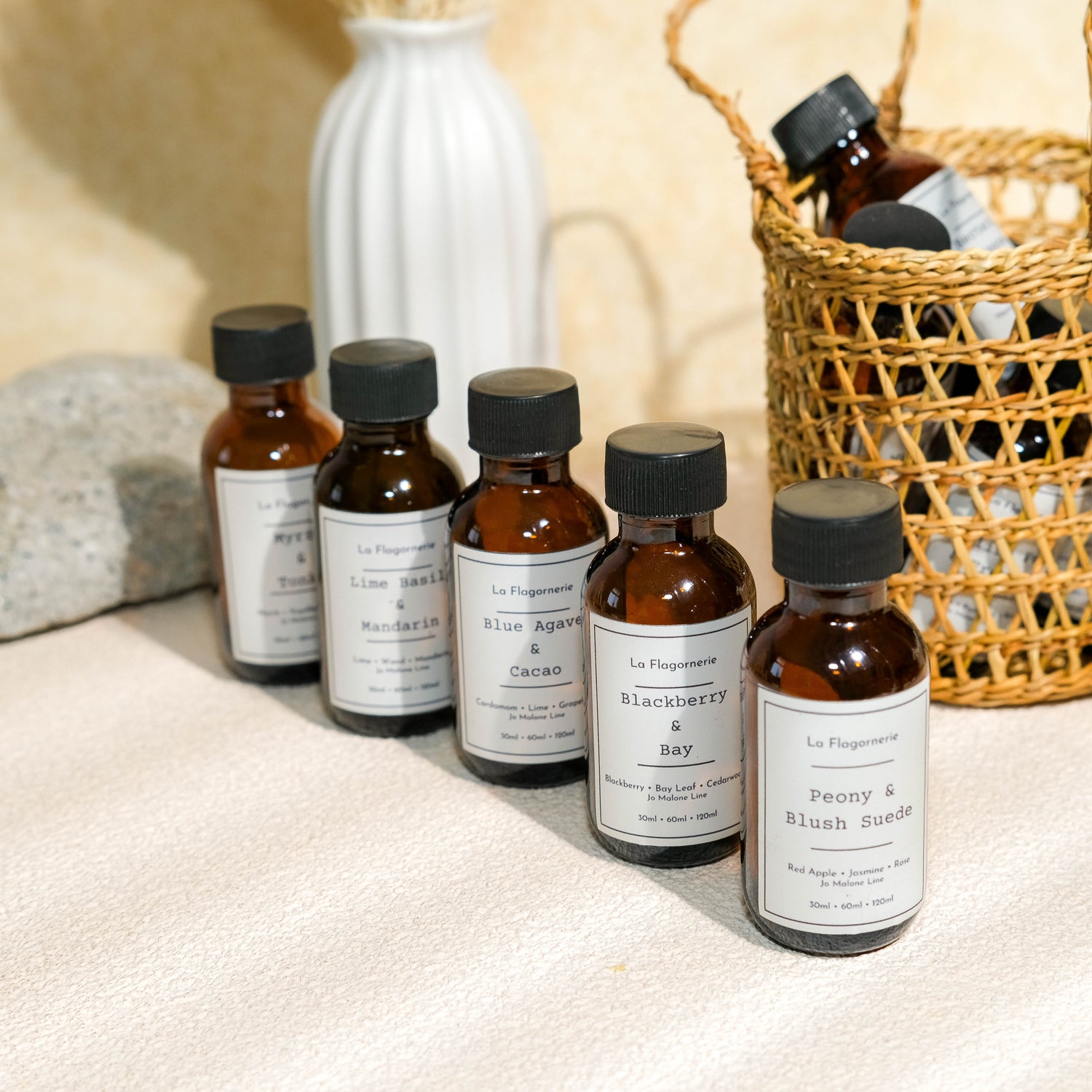 Introducing our wide array of pure perfume oils that are guaranteed to last for a very long time. You can use these babies for all your DIY perfume projects, as well as body products, linen sprays, and even candles! The possibilities are endless.